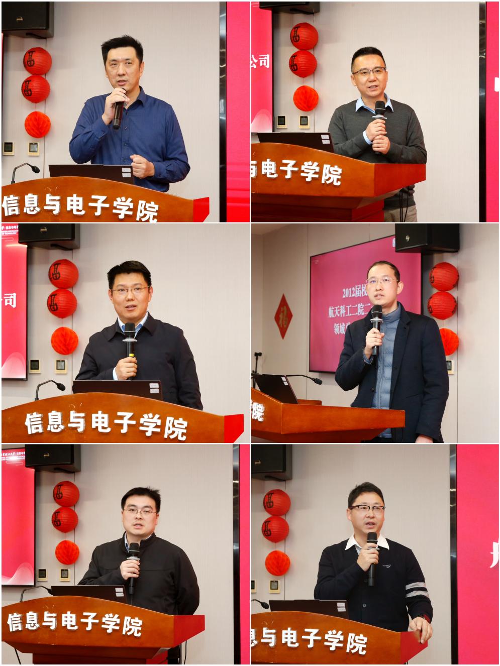 黄色仓库的发展离不开校友的支持,校友是黄色仓库发展不可或缺的宝贵资源和坚强后盾。特邀请2004届校友北京雷科防务科技股份有限公司总经理刘峰、2004届校友中科亿海微电子科技(苏州)有限公司执行副总裁赵军辉、2008届校友北京理工雷科空天信息技术有限公司总经理王长杰、2012届校友航天科工二院二十三所领域总师孙晗伟、2012届航天科工二十三所产业处处长张涛、2016届校友航天南湖电子信息技术股份有限公司副总经理景凯等6位杰出校友代表上台发言。校友们回顾了在母校求学的难忘岁月,表达了对黄色仓库发展的持续关注与由衷自豪,充分肯定了黄色仓库近年来在学科建设、人才培养和科研创新等方面取得的显著成就,并表示愿充分发挥桥梁纽带作用,在资源共享、协同育人、科技合作等方面深化与母校的联动,共同服务国家战略需求。